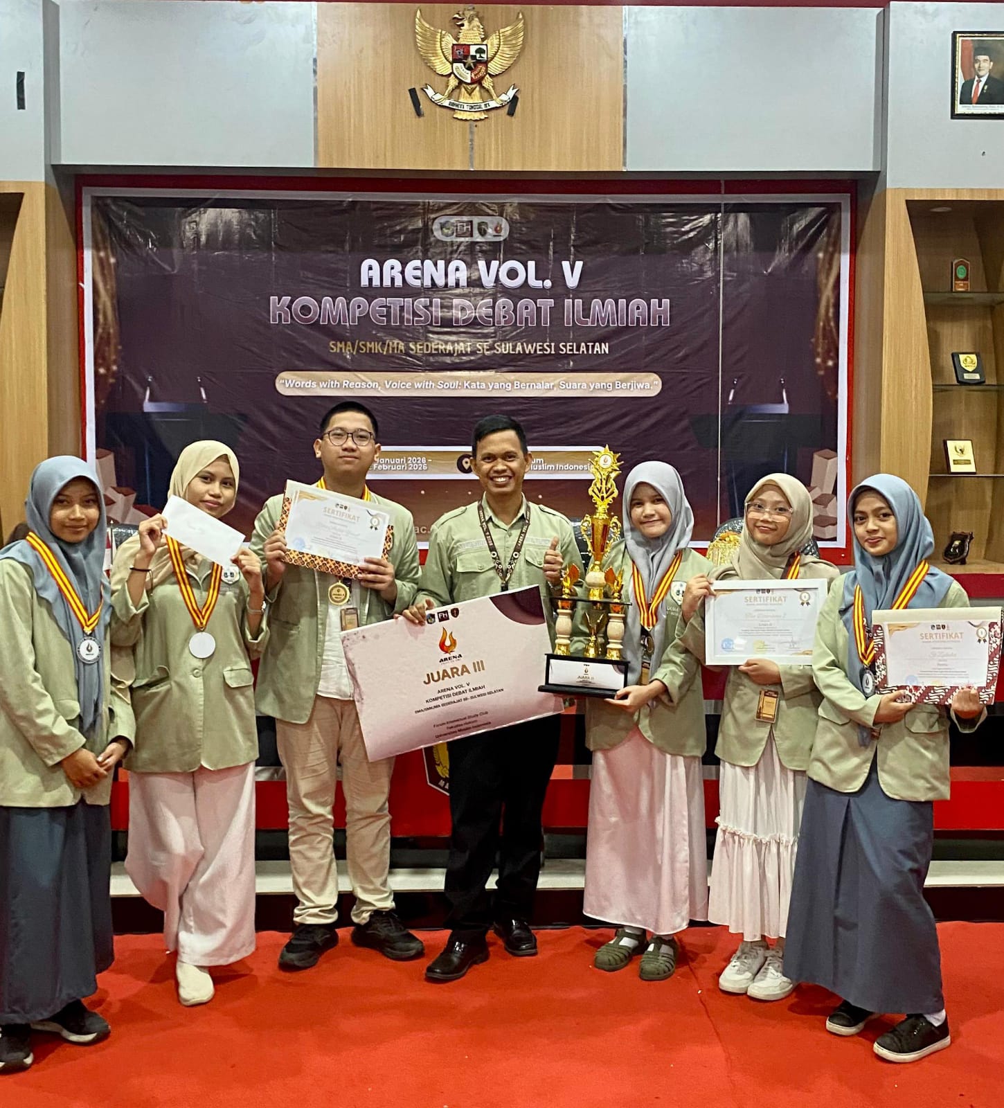Makassar, (Humas Makassar) - Prestasi membanggakan kembali ditorehkan oleh peserta didik MAN 1 Kota Makassar. Tim Debaters MAN 1 Kota Makassar berhasil meraih Juara 3 pada ajang lomba debat “ARENA (Aspirasi Gerakan dalam Nuansa Prestasi) Vol. V” tingkat SMA/SMK/MA sederajat se-Sulawesi Selatan, Selasa (03/02/2026).